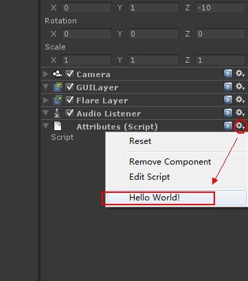 这函数只是起方便用,原本的脚本(组建)都会在“Component/Script”菜单下,在类之前声明一下这个,它便可以出现在”Componet”菜单下的任何位置。说明指的是要重启U3D才能显示,不过测试貌似直接可以显示。