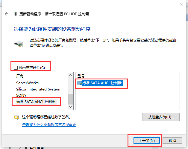 Win10 开启 AHCI 模式 1. 在 IDE 上选择更新驱动。 2. 3. 4. 5. 6. 安装完成后,此处的 IDE 会变成 AHCI。只更新第一个 IDE 就可以了,第二个不用更新,如果第二个也更新,电脑会瞬间蓝屏。 7. 重启电脑,进入 BIOS,选择 AHCI 模式,否则电脑会蓝屏,重启完成后,AHCI 已生效。 PC PC Win10 AHCI Git 删除本地分支 上一篇 时间复杂度、空间复杂度、O(1)、O(n)、O(n^2)、O(log n)、O(n log n) 下一篇