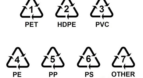 塑料制品底部的三角形标志,三个箭头组成的三角形,意思是“可回收再利用”。三角形内的数字,如“1””2”等,是数字标志。塑料数字标志有1到7,每个数字代表一种塑料材料,主要是方便回收以及了解其使用条件。