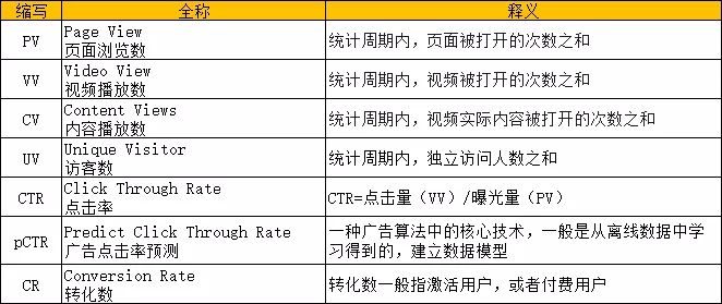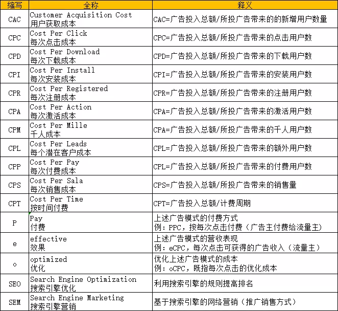 其实是不怎么常用的缩写,毕竟他们不能直接反映运营效果,还是需要结合公式才行。