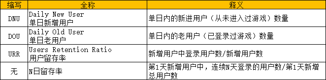 用户留存相关的缩写其实非常少见,大概因为30留这样的英文展开字数过多,理解困难,还不如直接说中文吧。