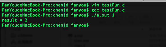| rm a.out vim testFun.c gcc testFun.c ./a.out 1