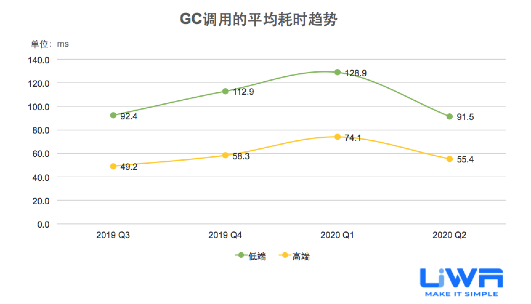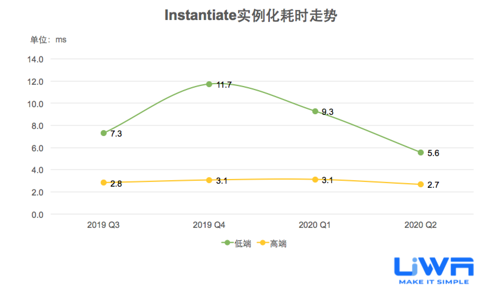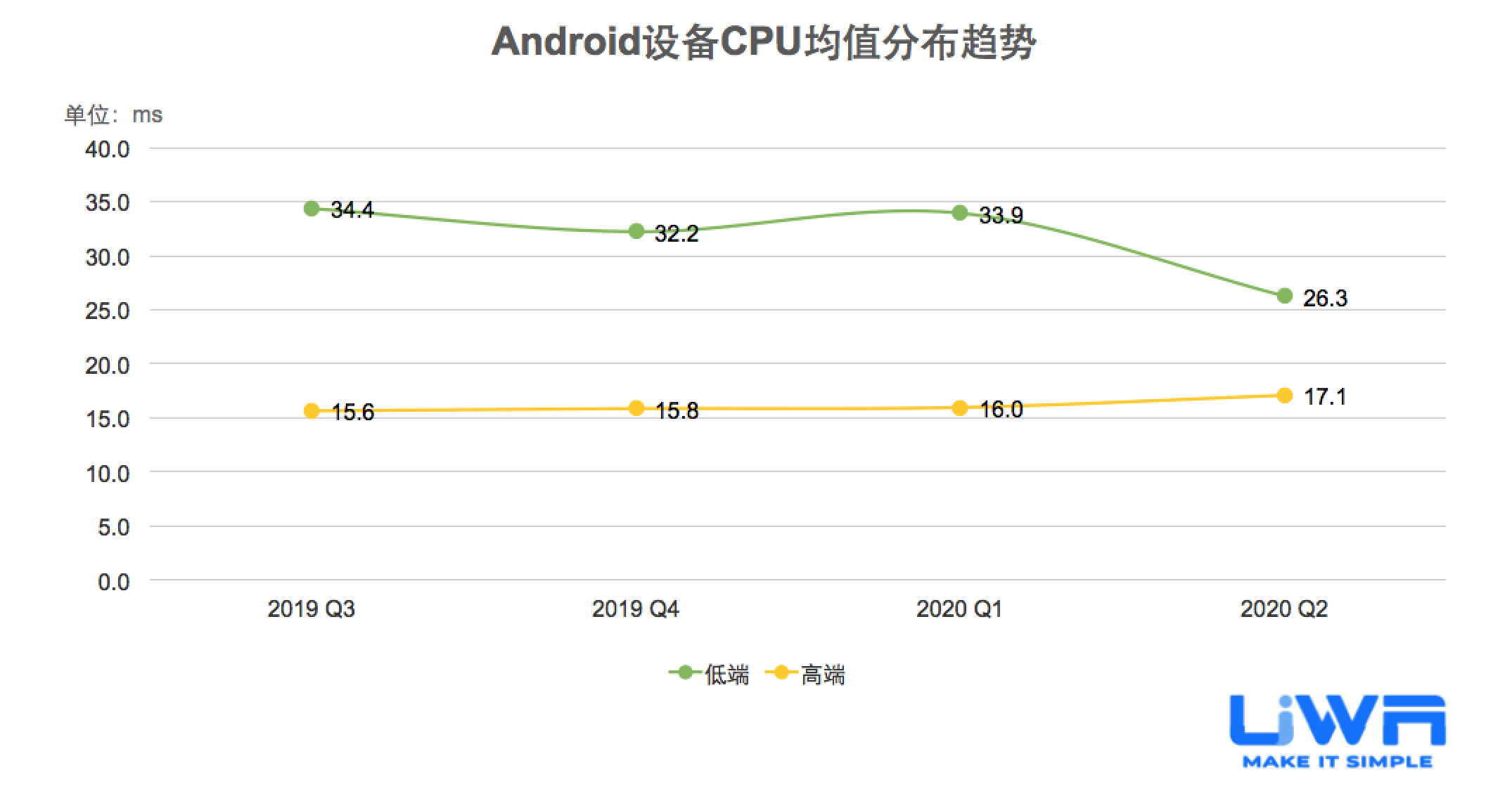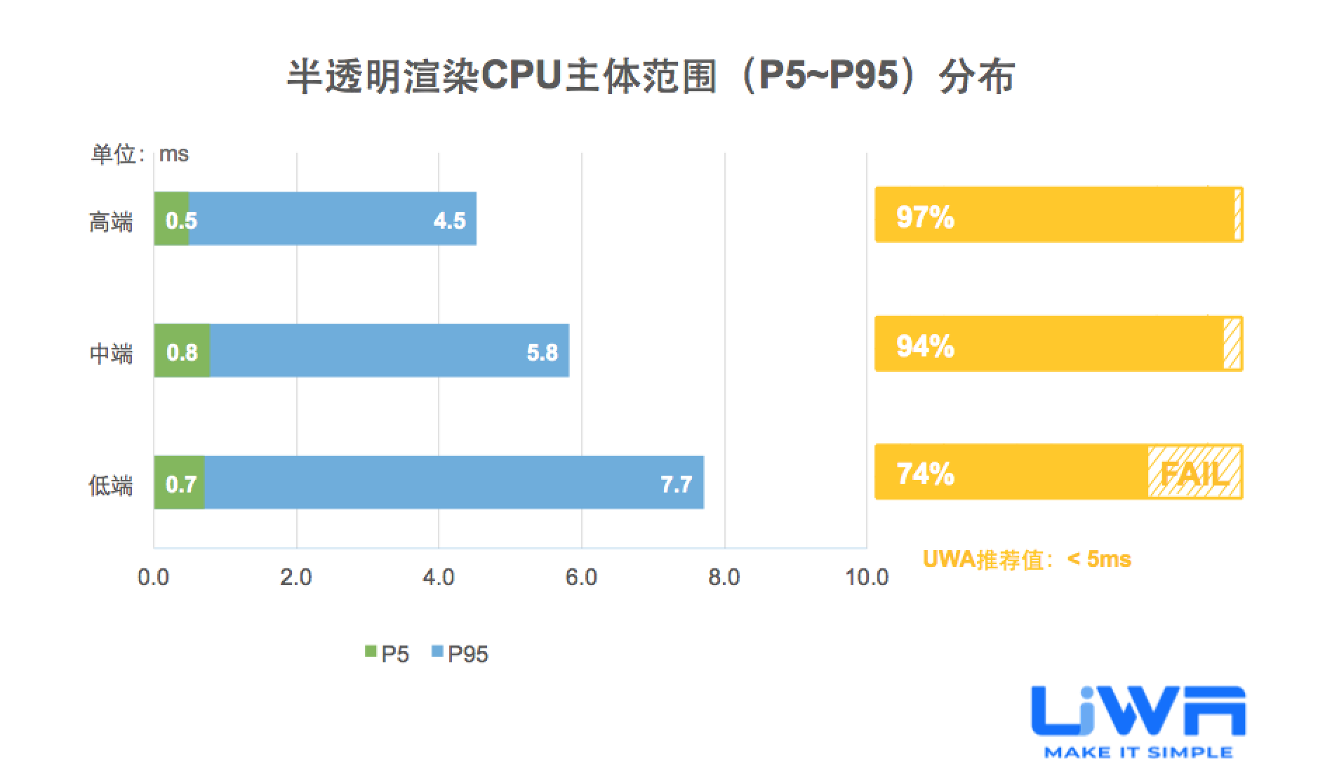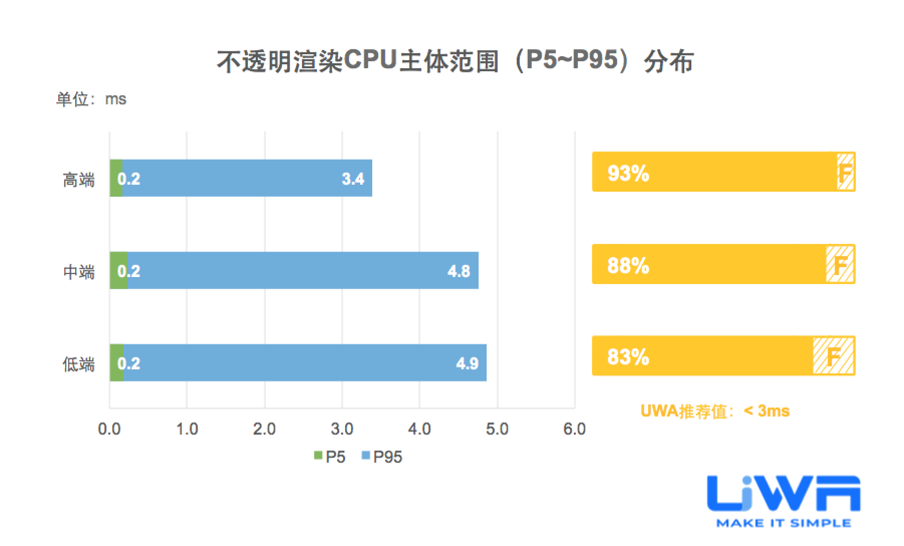 按照UWA官网(www.uwa4d.com)的测评机型分类,我们将统计的性能数据分为低端、中端和高端;在趋势图中则直接以最具有代表性的低端和高端来展现。