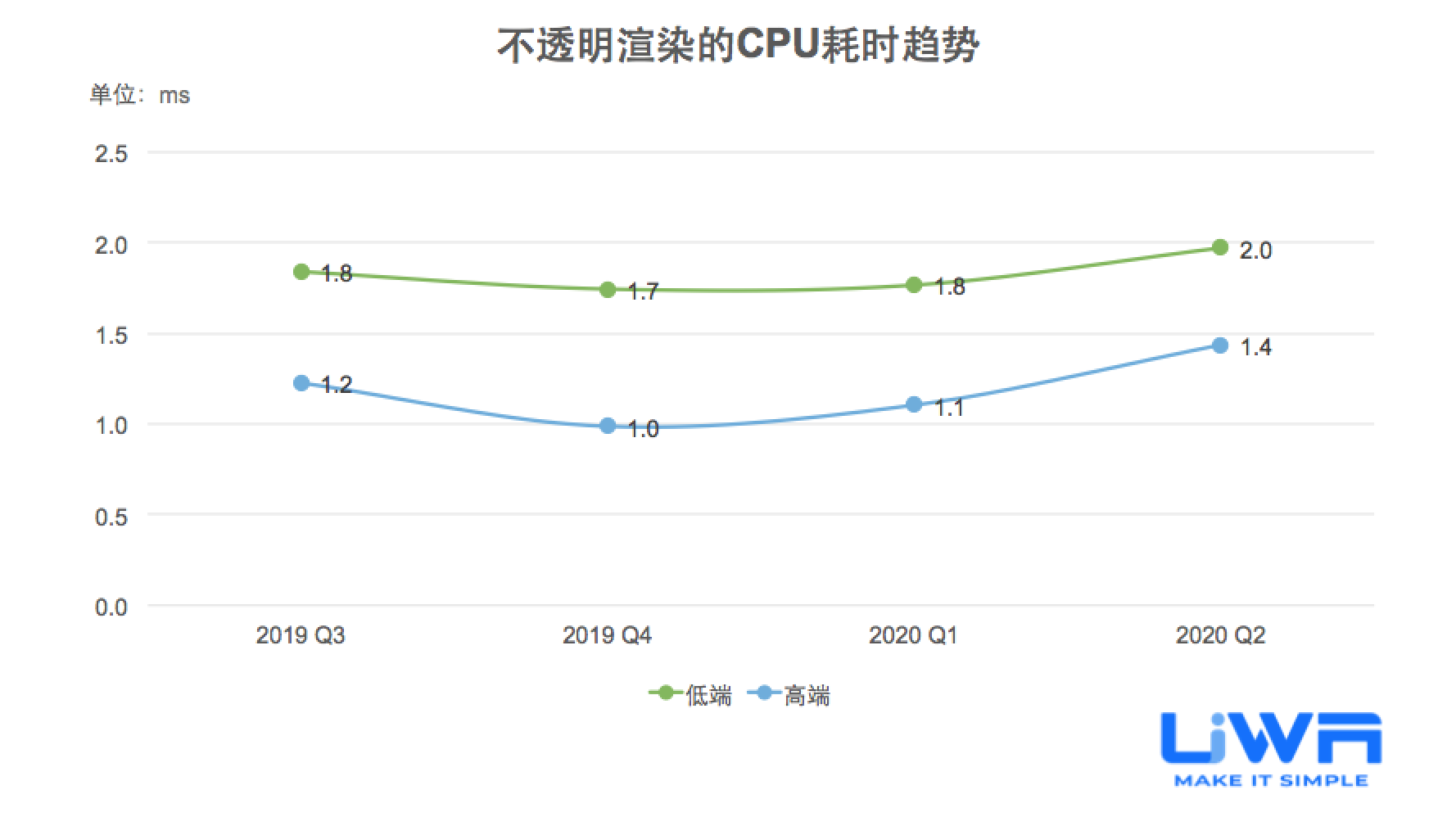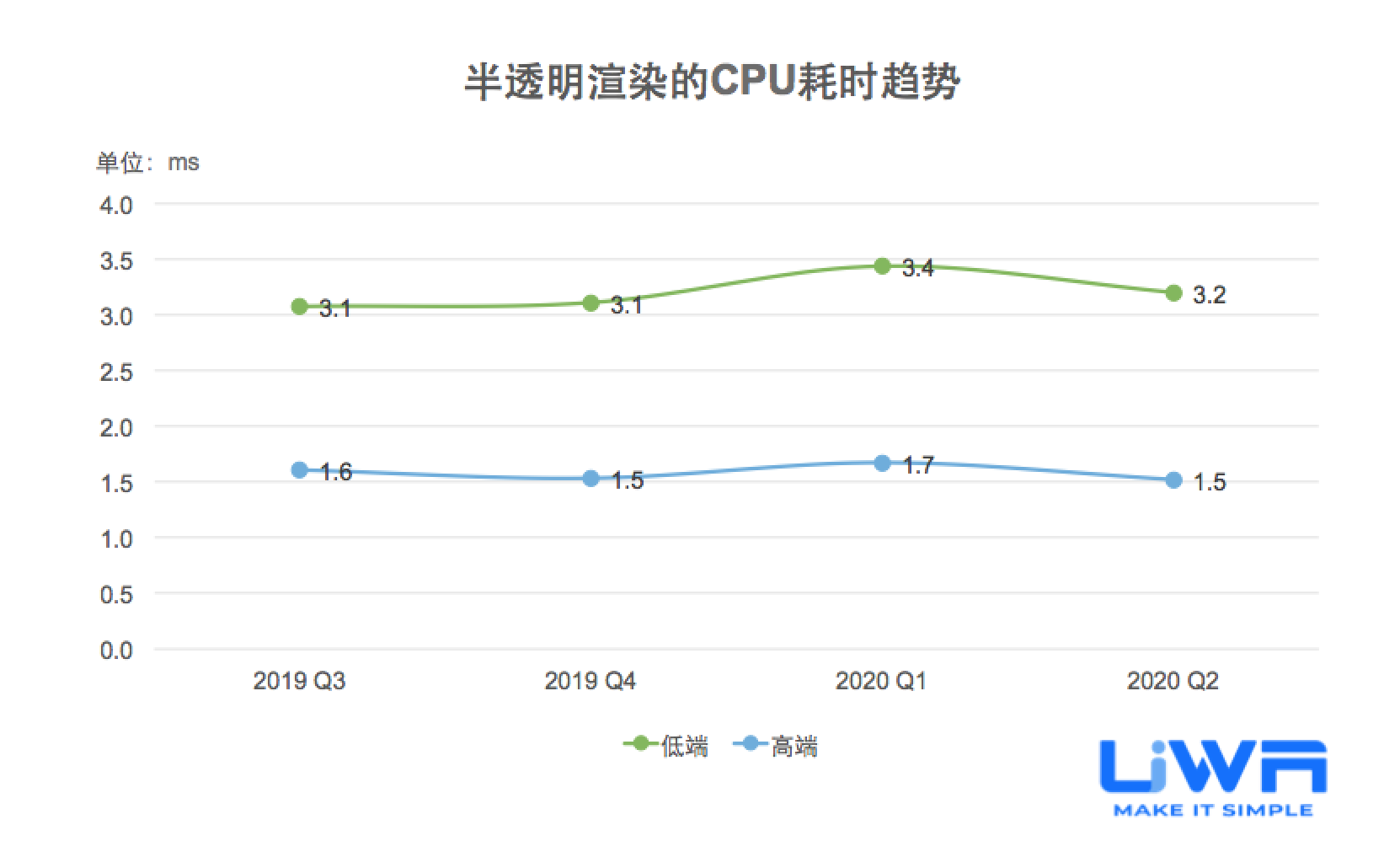 在过去的4个季度中,半透明渲染和不透明渲染在高端和低端设备上的性能均较为稳定。