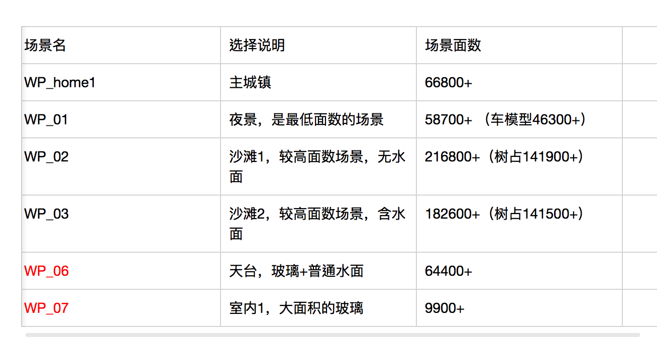 我们分别选取主城镇、不同战斗类型的最高面数场景作为场景用例
