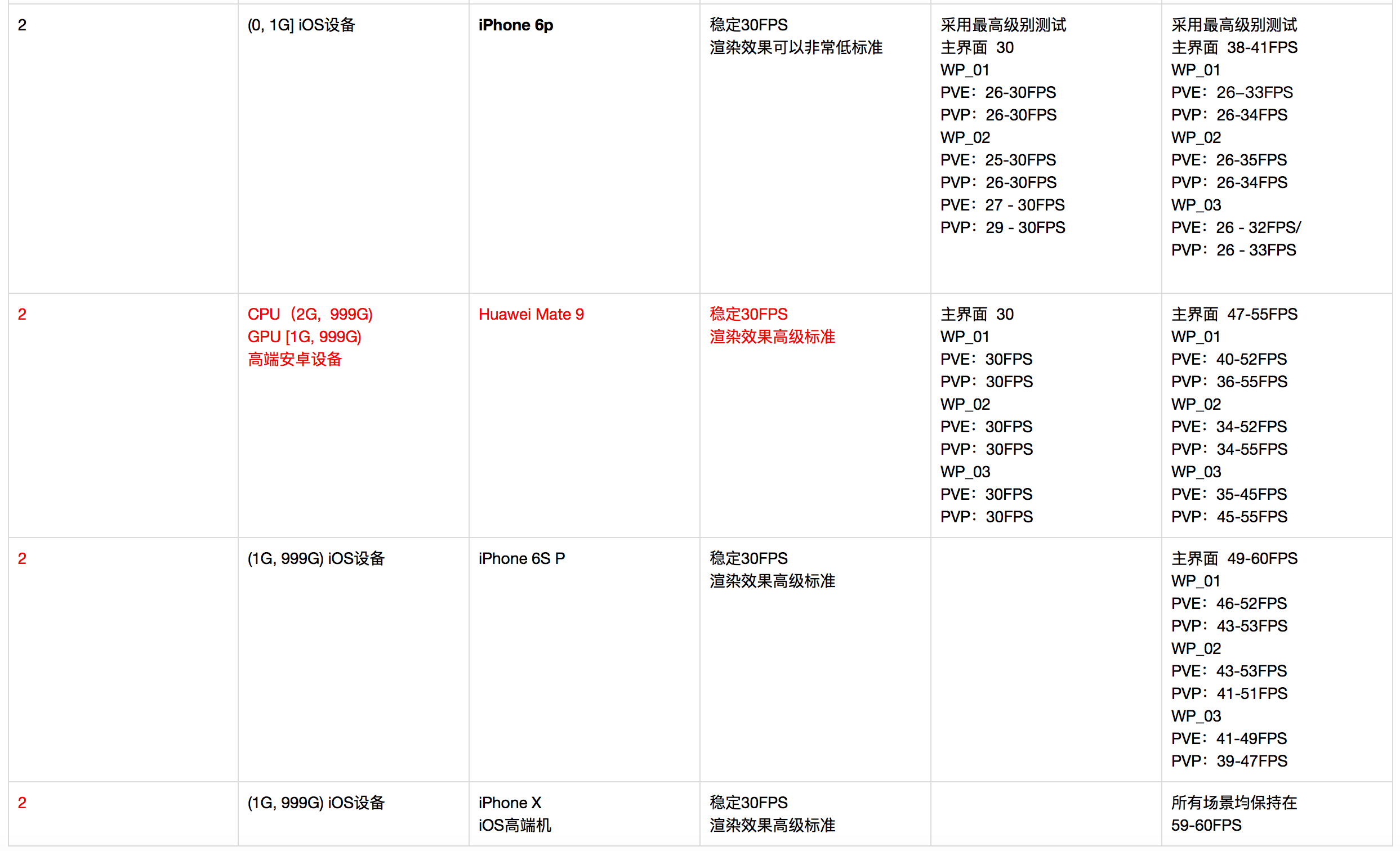 其实中间经过了几次迭代。表格里的最后一列是针对帧数目标,经过反复调整配置形成的数据。