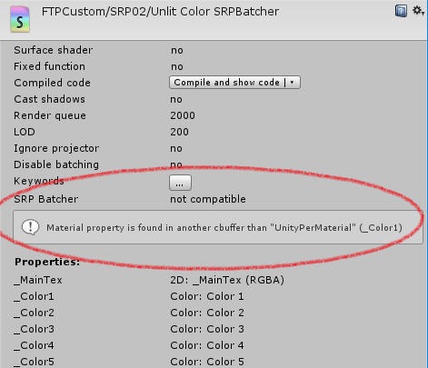 如果您正在编写自己的渲染循环,您的着色器必须遵循一些规则才能通过 SRP Batcher 代码路径。