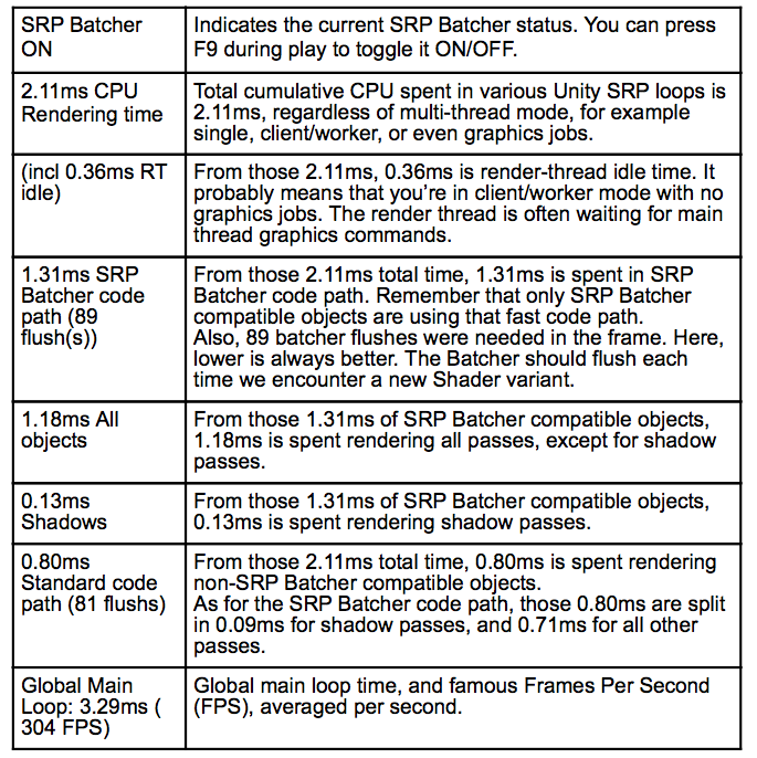 您可以从GitHub 上的SRP Batcher 项目模板获取 SRPBatcherProfiler.cs 。