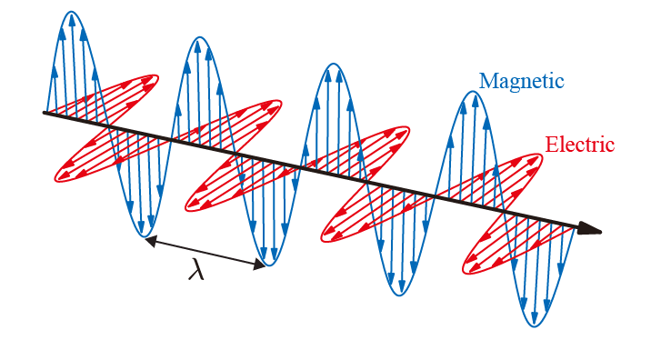 光波的磁场和电场的振荡相互耦合,且磁场矢量和电场矢量相互垂直,两者长度之比固定,该比率等于相速度(Phase Velocity)。