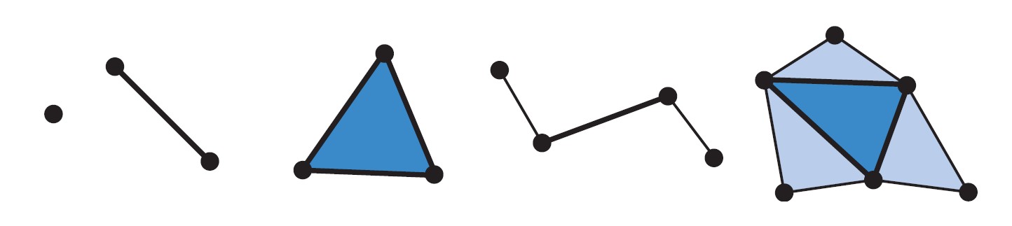 几何着色器程序的输入是一个单独的类型:点,线段,三角形。两个最右边的图元,包括与线和三角形对象相邻的顶点也可被使用。