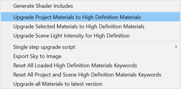 如果要为项目设置 HDRP,请确保安装了所需的包。然后,使用 HD Render Pipeline Wizard (Window > Render Pipeline > HD Render Pipeline Wizard) 来一键设置您的项目。