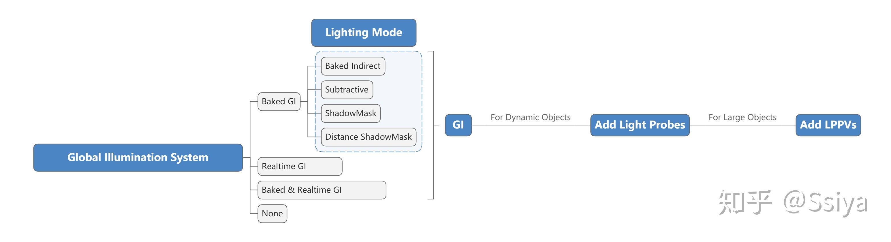 主要的光照信息由GI提供,为了节省实时计算的开销,我们会将物体的光照信息记录下来,静态物件的光照信息烘焙到Lightmap(光照图),动态物件使用烘焙到Light Probes(光照探针)上的光照信息。